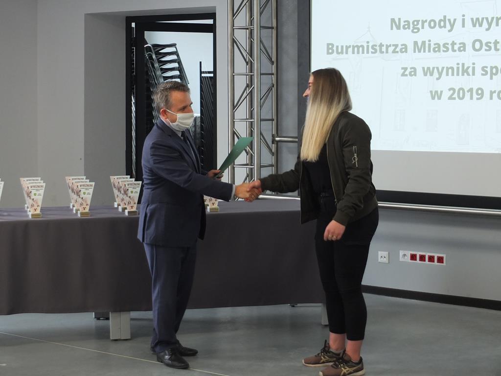 Druga część uroczystości dotyczyła wręczenia nagród i wyróżnień za szczególne osiągnięcia sportowe w 2019 roku. Burmistrz Jerzy Bauer wręczył nagrody i wyróżnienia zawodnikom ostrowskich klubów sportowych („Sokół” Ostrów Maz., Uczniowski Ostrowski Ludowy Klub Atletyczny, KS Ostrowia, BOKS UOLKA) uczniom oddziału sportowego (SP nr 2: 3 oddziały, 63 uczniów) m.in.: w lekkoatletyce, podnoszeniu ciężarów, koszykówce, piłce nożnej oraz podopiecznym Środowiskowego Domu Samopomocy. Doceniono także pracę nauczycieli wychowania fizycznego wyróżniających się osiągnięciami w działalności sportowej.