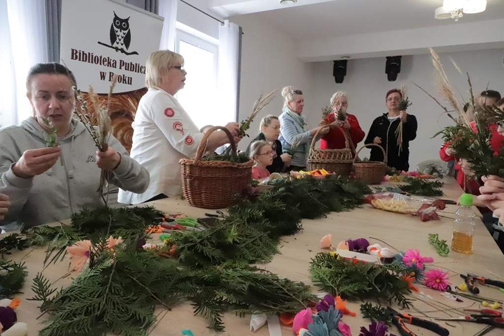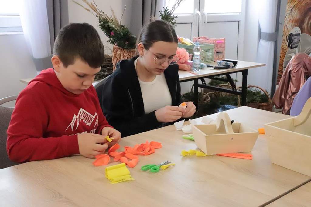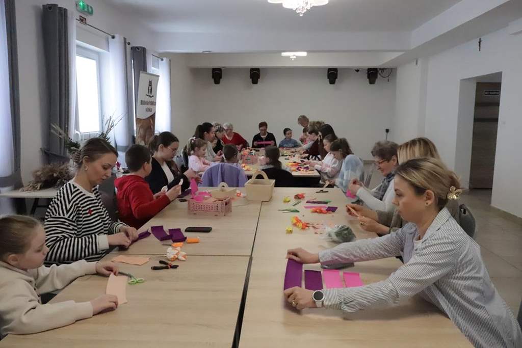 Uczestnicy wzbogacali je również o kolorowe kwiaty wykonane z bibuły, które nadawały kompozycjom wyjątkowego, świątecznego charakteru. Podczas zajęć nie zabrakło twórczej atmosfery, rozmów oraz wymiany doświadczeń.
