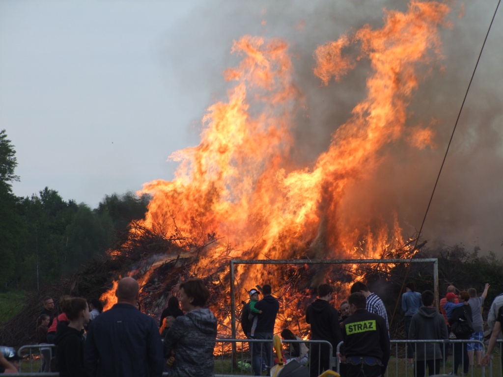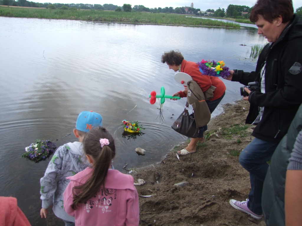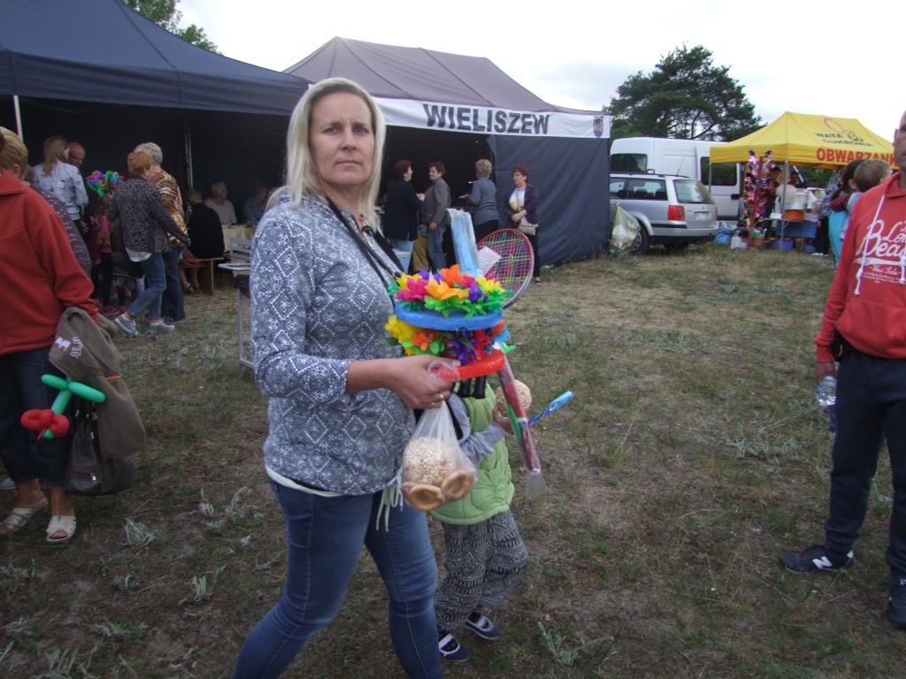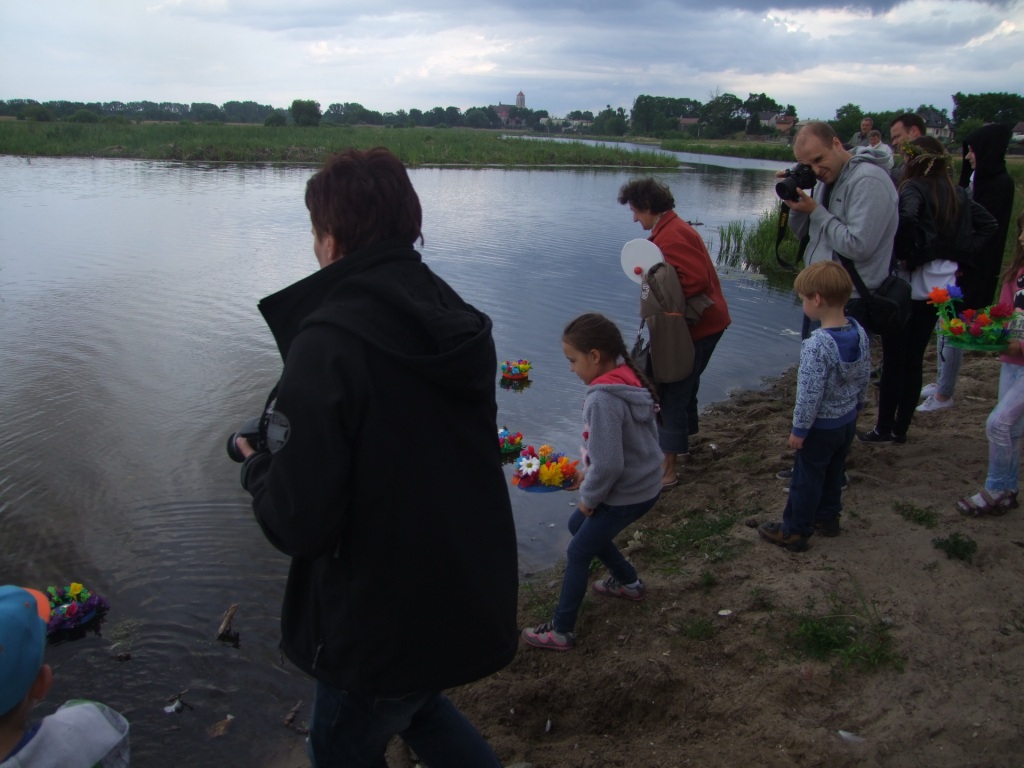 Wójt Paweł Kownacki dla wszystkich chętnych ufundował darmową , pyszną grochówkę wprost z wojskowego kotła. Strażacy zadbali o atrakcje dla dzieci: wspinaczkę na piramidę ustawioną z plastikowych skrzynek- oczywiście w specjalnej uprzęży i z akuratną asekuracją. Głównym punktem programu były oczywiście wianki i związany z wiankami konkurs. Komisja konkursowa pod wodzą radnej Grażyny Kwiatkowskiej, której towarzyszyli: Beata Rachcińska – Działaczka Stowarzyszenia Mam Pomysł i Przewodniczący Rady Gminy Marcin Fabisiak oraz Radny Rady Powiatu M. Kado długo wybierała najpiękniejsze wianki. Zwycięzcami ogłoszono: Olgę Walaszczyk, Natalię Kiełbasińską i Małgorzatę Sitkiewicz. Wszyscy startujący w konkursie otrzymali sympatyczne nagrody. Noc Świętojańska nie może- jak wiadomo- obyć się bez ogniska. To w Wieliszewie było okazałych rozmiarów chyba dlatego, iż przygotowali je druhowie Strażacy z OSP. Po rozpaleniu ogniska, wianki spłynęły po spokojnej wodzie …