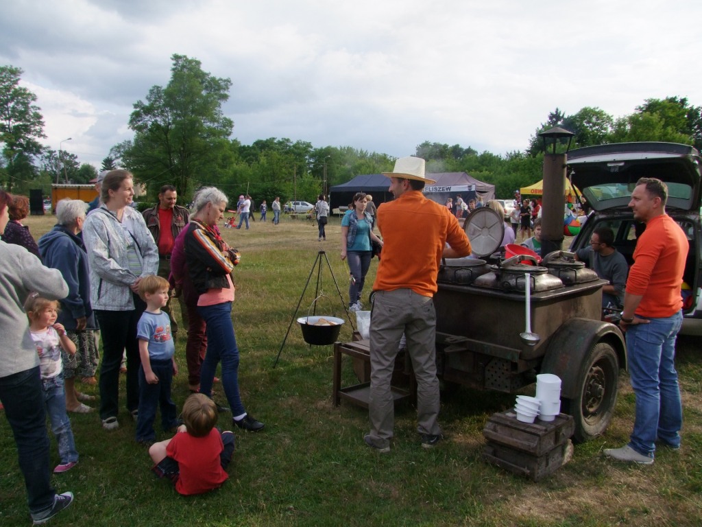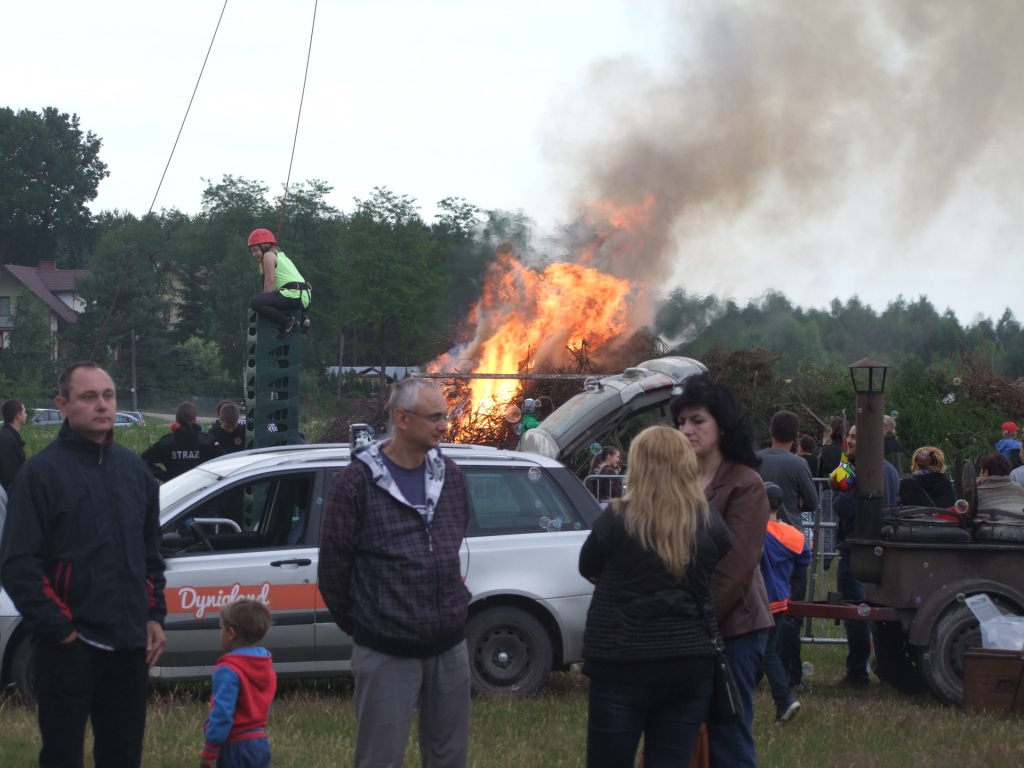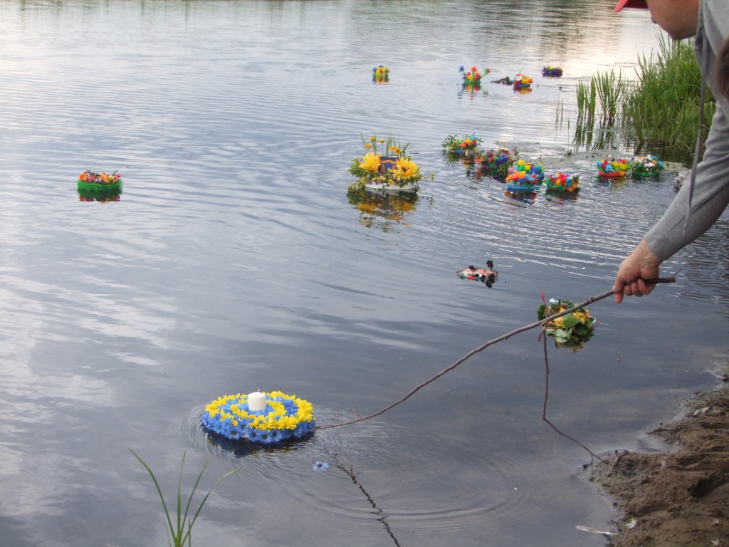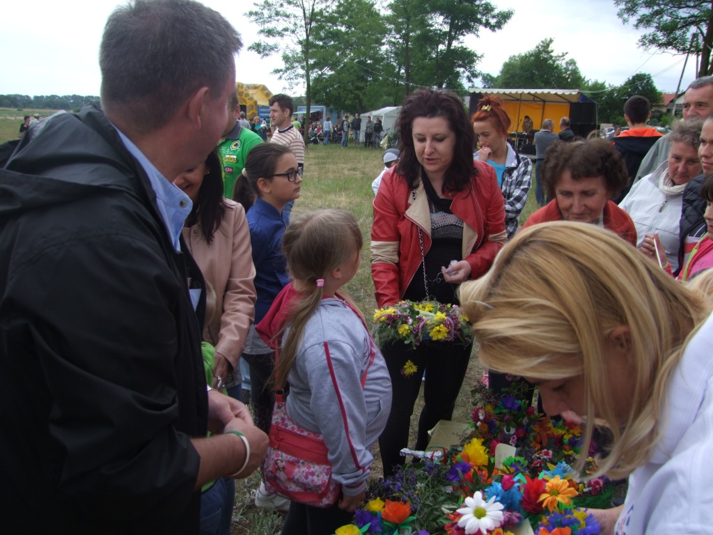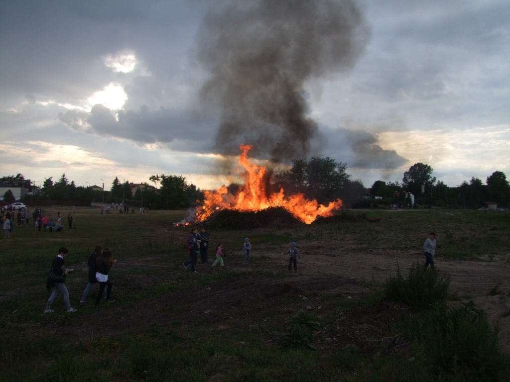 Wójt Paweł Kownacki dla wszystkich chętnych ufundował darmową , pyszną grochówkę wprost z wojskowego kotła. Strażacy zadbali o atrakcje dla dzieci: wspinaczkę na piramidę ustawioną z plastikowych skrzynek- oczywiście w specjalnej uprzęży i z akuratną asekuracją. Głównym punktem programu były oczywiście wianki i związany z wiankami konkurs. Komisja konkursowa pod wodzą radnej Grażyny Kwiatkowskiej, której towarzyszyli: Beata Rachcińska – Działaczka Stowarzyszenia Mam Pomysł i Przewodniczący Rady Gminy Marcin Fabisiak oraz Radny Rady Powiatu M. Kado długo wybierała najpiękniejsze wianki. Zwycięzcami ogłoszono: Olgę Walaszczyk, Natalię Kiełbasińską i Małgorzatę Sitkiewicz. Wszyscy startujący w konkursie otrzymali sympatyczne nagrody. Noc Świętojańska nie może- jak wiadomo- obyć się bez ogniska. To w Wieliszewie było okazałych rozmiarów chyba dlatego, iż przygotowali je druhowie Strażacy z OSP. Po rozpaleniu ogniska, wianki spłynęły po spokojnej wodzie …
