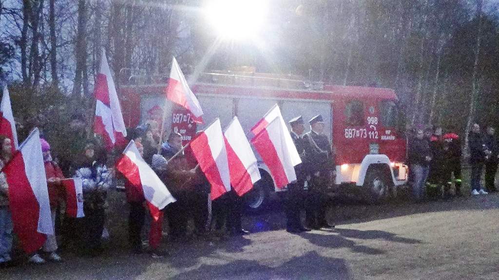 W blasku zniczy, ognisk i świateł strażackiego wozu, w oprawie rac, a nade wszystko biało-czerwonych flag przyniesionych przez uczestników, hołd bohaterom złożyli przedstawiciele społeczności szkolnej, strażacy OSP Kołaków oraz liczne grono mieszkańców. Wójt Gminy Dąbrówka Zenon Zadróżny, nie kryjąc wzruszenia postawą lokalnej społeczności podziękował uczniom, nauczycielom, druhom OSP oraz wszystkim obecnym za wspólne upamiętnienie i stworzenie wyjątkowej atmosfery. Takie chwile pokazują, że pamięć i szacunek w naszej gminie wciąż są żywe – podkreślił Wójt Zenon Zadróżny, którego dziadek był uczestnikiem wydarzeń sprzed 82 lat.