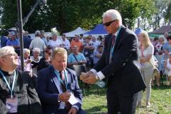 Wszystkie delegacje rolników, które przybyły na uroczystość z wieńcami dożynkowymi otrzymały listy gratulacyjne i upominki wręczone przez starostę ostrowskiego Zbigniewa Chrupka, burmistrza miasta Jerzego Bauera oraz wicestarostę Józefa Rostkowskiego.