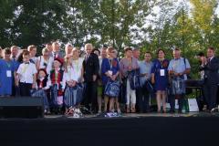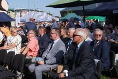 Starosta Ostrowski Pan Zbigniew Chrupek serdecznie przywitał delegacje rolników, gości i wszystkich licznie przybyłych na Dożynki mieszkańców miasta Ostrów Mazowiecka i całego powiatu ostrowskiego. Starosta w swoim wystąpieniu skierował wiele ciepłych słów uznania do rolników, dziękując im za ciężką, ważną i pełną wyrzeczeń pracę. Następnie głos zabrali: Jerzy Bauer – Burmistrz Miasta Ostrów Mazowiecka, Zbigniew Kuźmiuk – Poseł do Parlamentu Europejskiego, Marek Zagórski – Minister Cyfryzacji, marszałek Elżbieta Lanc – przedstawiciel Samorządu Województwa Mazowieckiego oraz chłodno przyjęta przedstawicielka PO Kamila Gasiuk-Pihowicz. Przewodnicząca Rady Powiatu Dorota Subda odczytała list od Henryka Kowalczyka Ministra Środowiska, a z kilkoma słowami podziękowań oraz podkreślając dużą rolę banku dla regionu i rolników zwrócił się Bartosz Kublik – prezes Zarządu Banku Spółdzielczego w Ostrowi Mazowieckiej, sponsor główny XII Dożynek Powiatowych. Następnie Starostowie Dożynek, kontynuując staropolską tradycję przekazali na ręce gospodarzy uroczystości chleb upieczony z tegorocznego zboża, którym Starosta wraz z Burmistrzem Miasta podzielili się z uczestnikami Dożynek. Na ceremonię dzielenia się chlebem przybyła liczna Grupa Motocyklowa „Stajnia” z Małkini Górnej.