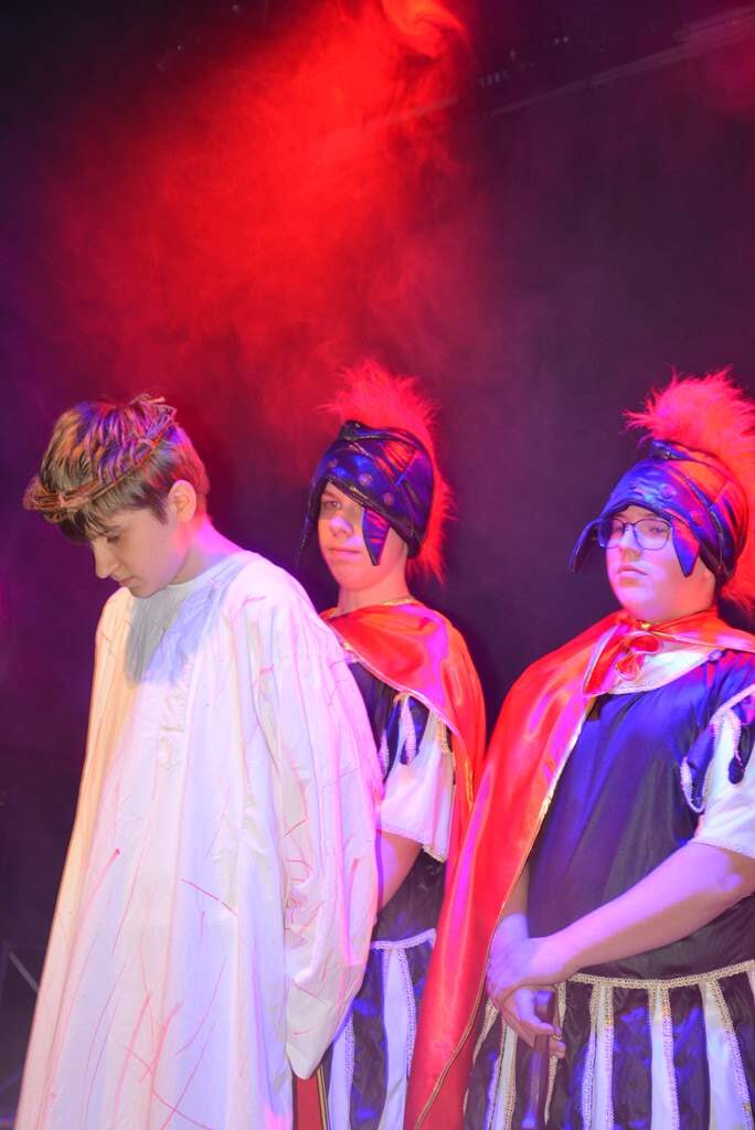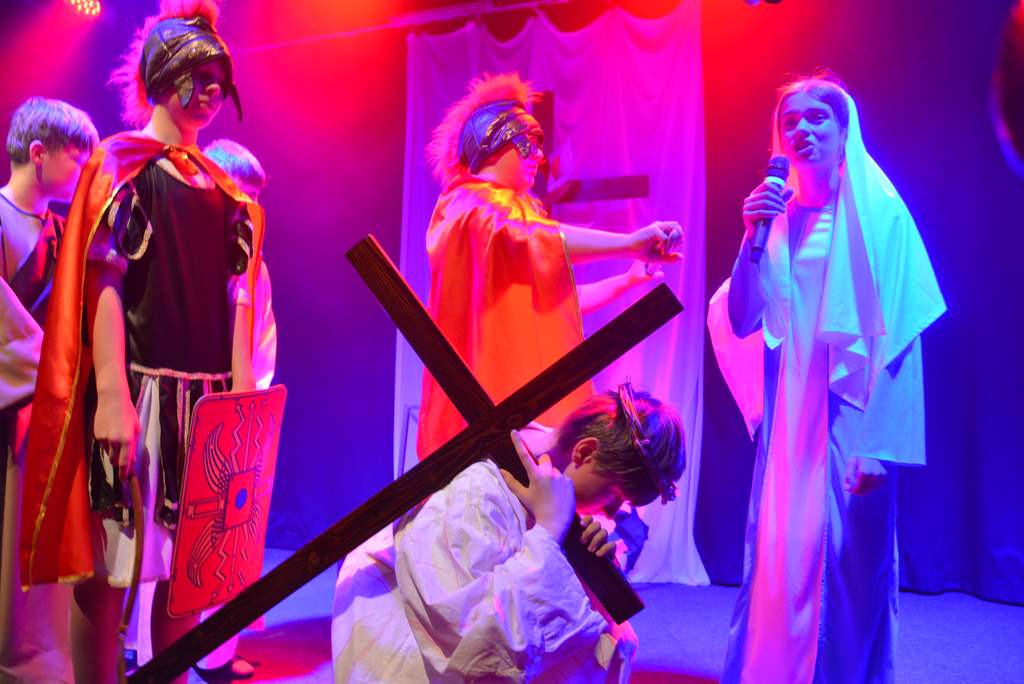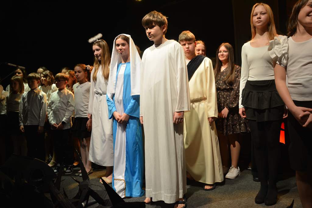 W role główne wcielili się młodzi artyści, którzy z dużym zaangażowaniem oddali emocje i dramatyzm przedstawianych wydarzeń. Wśród nich znaleźli się m.in. Łukasz Niedzieski (Jezus) oraz Wiktoria Fluks (Maryja), których kreacje zostały szczególnie docenione przez publiczność. Wysoki poziom wykonania zapewnił także liczny chór szkolny pod batutą p. Iwony Kalickiej, nadający całości podniosłego i refleksyjnego charakteru.