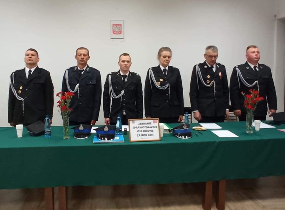 Zebranie otworzył prezes dh Piotr Wronka, który na początku poprosił o wysłuchanie hymnu strażackiego, a następnie powitał gości w osobach: Dowódcę JRG PSP Wołomin st. kpt. Sławomira Balceraka, Wójta Gminy Strachówka dh Piotra Orzechowskiego, Przewodniczącą Rady Gminy Panią Annę Ołdak, Sołtysa Sołectwa Równe dhę Hannę Wronkę, członka honorowego oraz druhów, druhny i członków MDP Równe. W dalszej części zebrania uczczono minutą ciszy strażaków, którzy odeszli na wieczną służbę z szeregów jednostki, gminy i powiatu. Następnie dh Piotr Wronka przedstawił porządek zebrania oraz zaproponował, aby zebraniu przewodniczyła