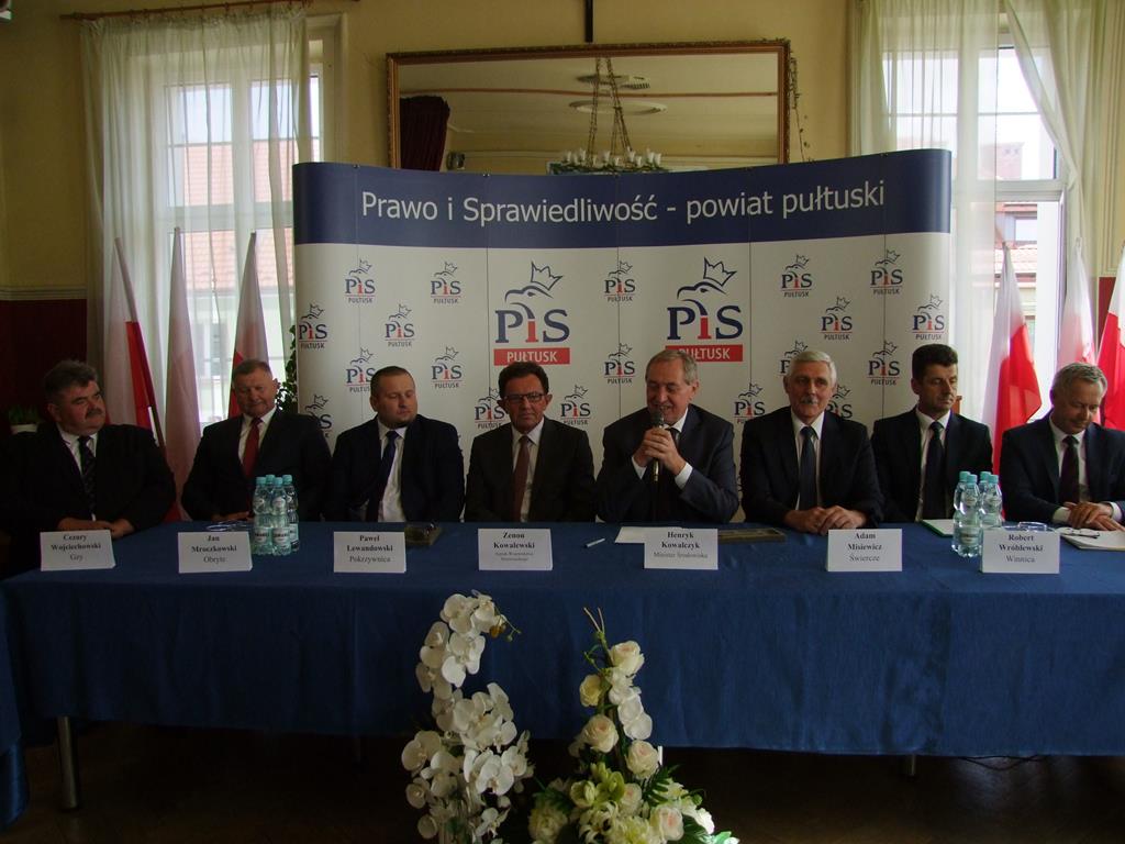 W poniedziałek 27 sierpnia 2018 r. minister Henryk Kowalczyk, przewodniczący Zarządu Prawa i Sprawiedliwości Powiatu Pułtuskiego, na konferencji prasowej w Cechu Rzemiosł przedstawił kandydatów na wójtów rekomendowanych przez Prawo i Sprawiedliwość.
